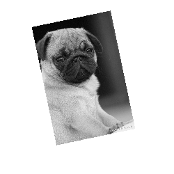 Similarly, rotating object by 5 degrees counter-clockwise, can be accomplished like so: